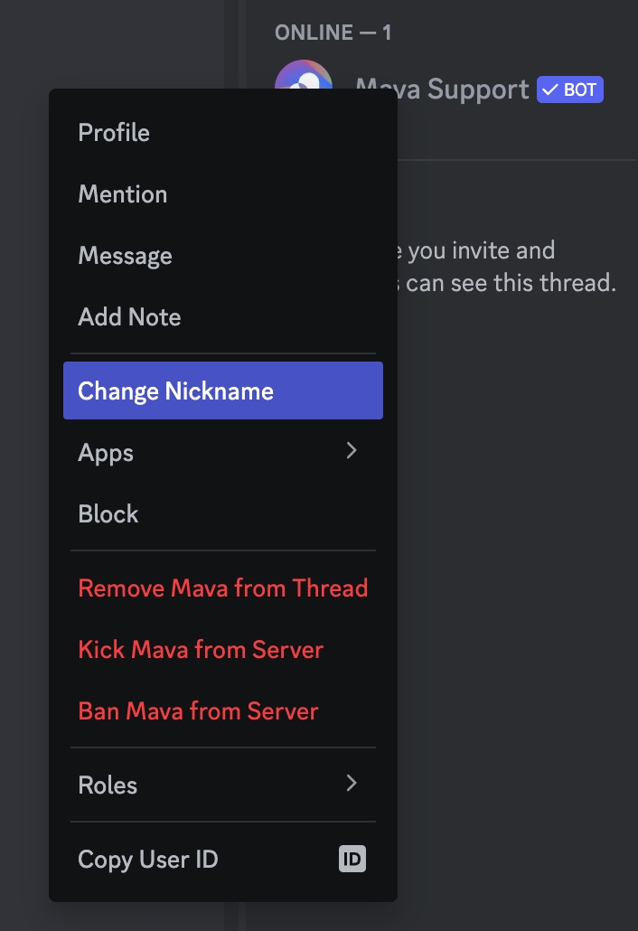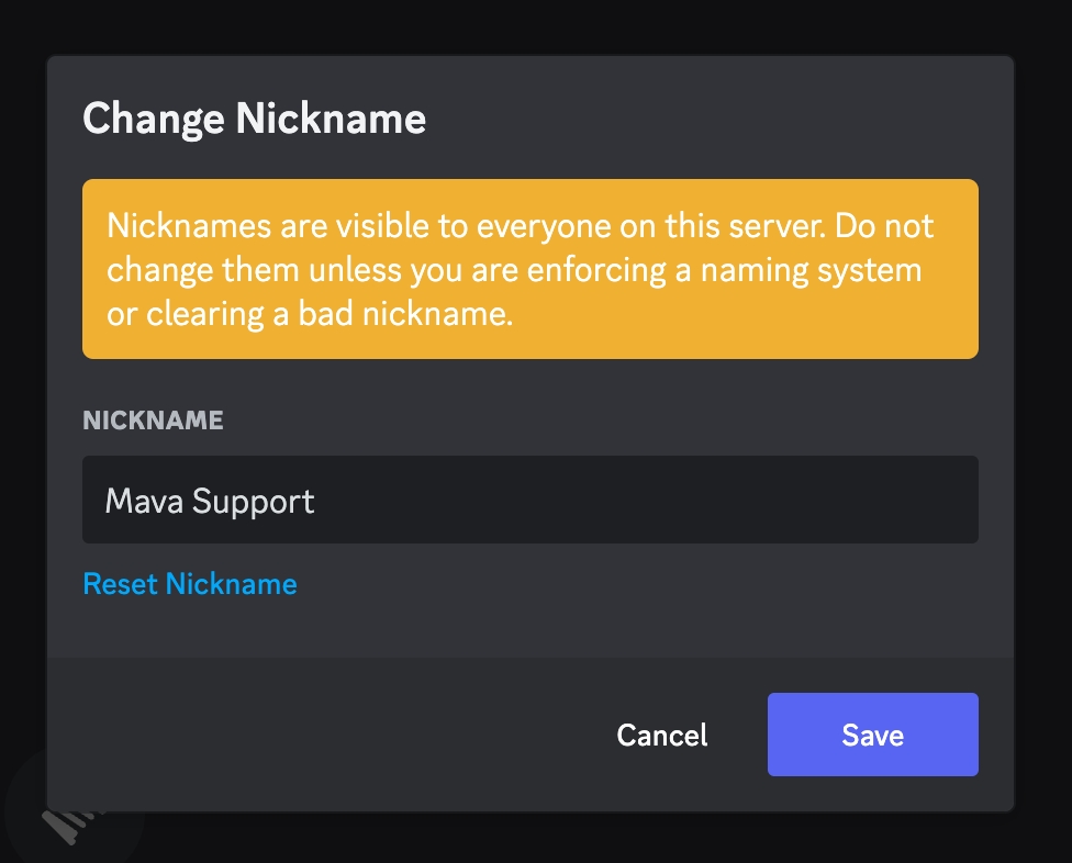 You can easily change the display name of the Mava Discord bot to align it with your company name e.g. 'XYZcompany Support'