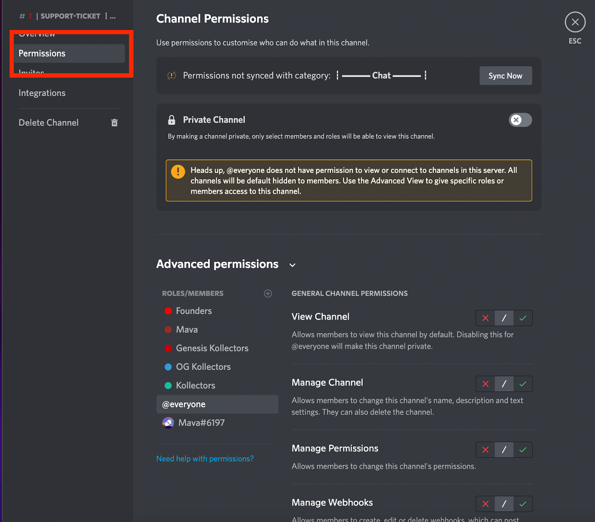 Step 4: Set the correct Discord channel permissions